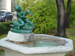 This fountain was cast by the Paravicinische Giesserei in 1864. It stands