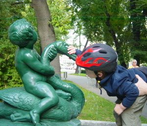 From the exotic butterfly enclosure to the gigantic climbing castle, from the chinese teahouse to the penguin pool, from the gondoletta on the lake to the peaceful meadow tucked in a quiet corner, it has something for everyone. For the travel-weary adults, just lying back and gazing over the broad swathes of soft green grass felt like paradise. The futuristic form of Mannheim’s television tower hovered on the horizon, hinting at a science-fiction utopia of perfectly controlled environments.